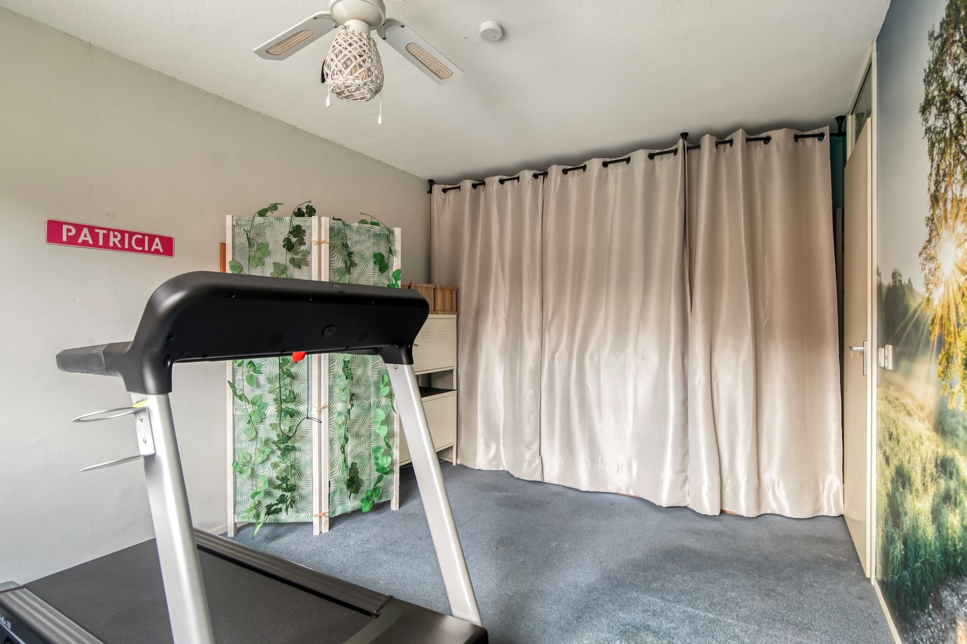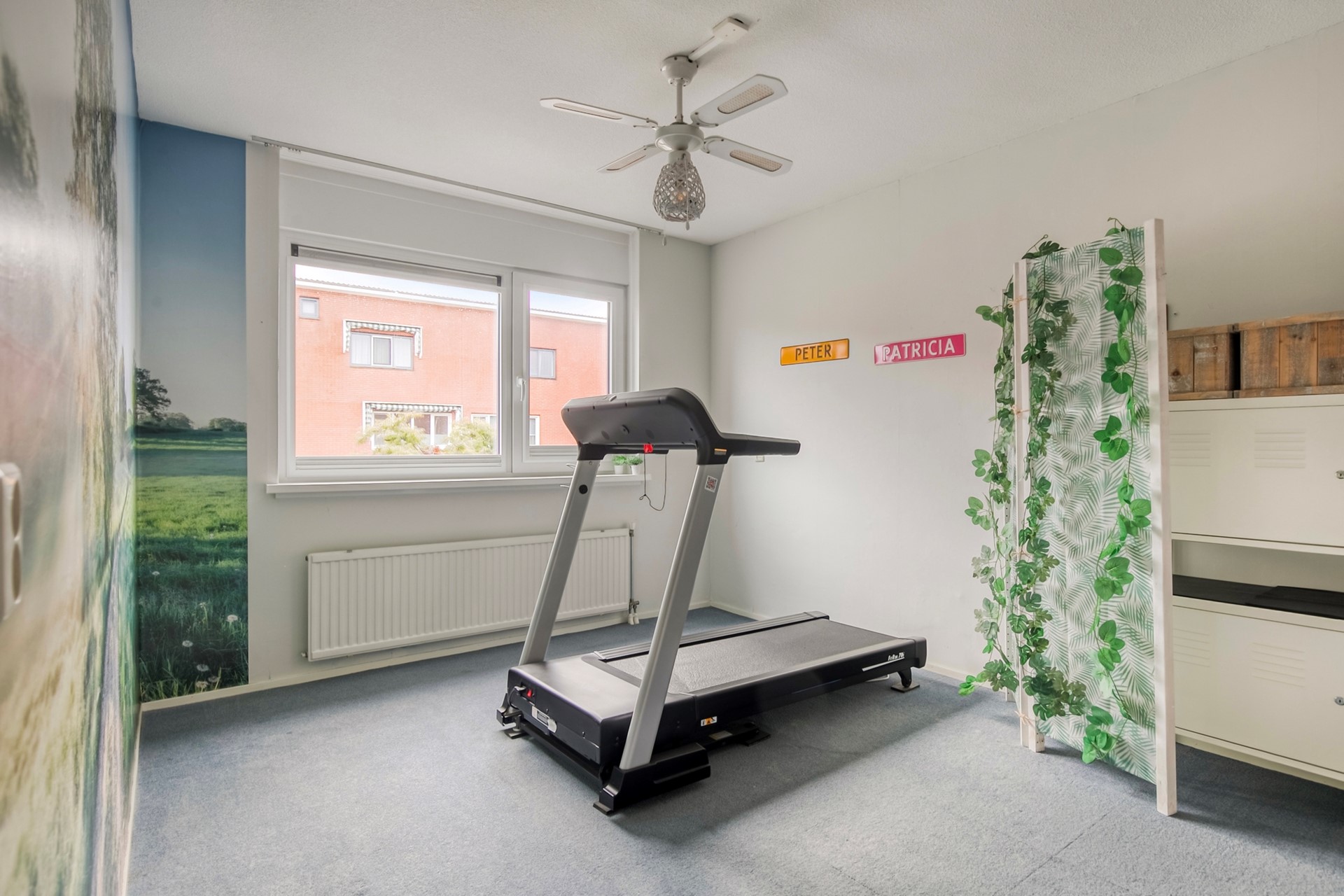 De tweede slaapkamer is tevens ruim van formaat en bevindt zich aan de voorzijde. Momenteel is deze kamer in gebruik als sportkamer.