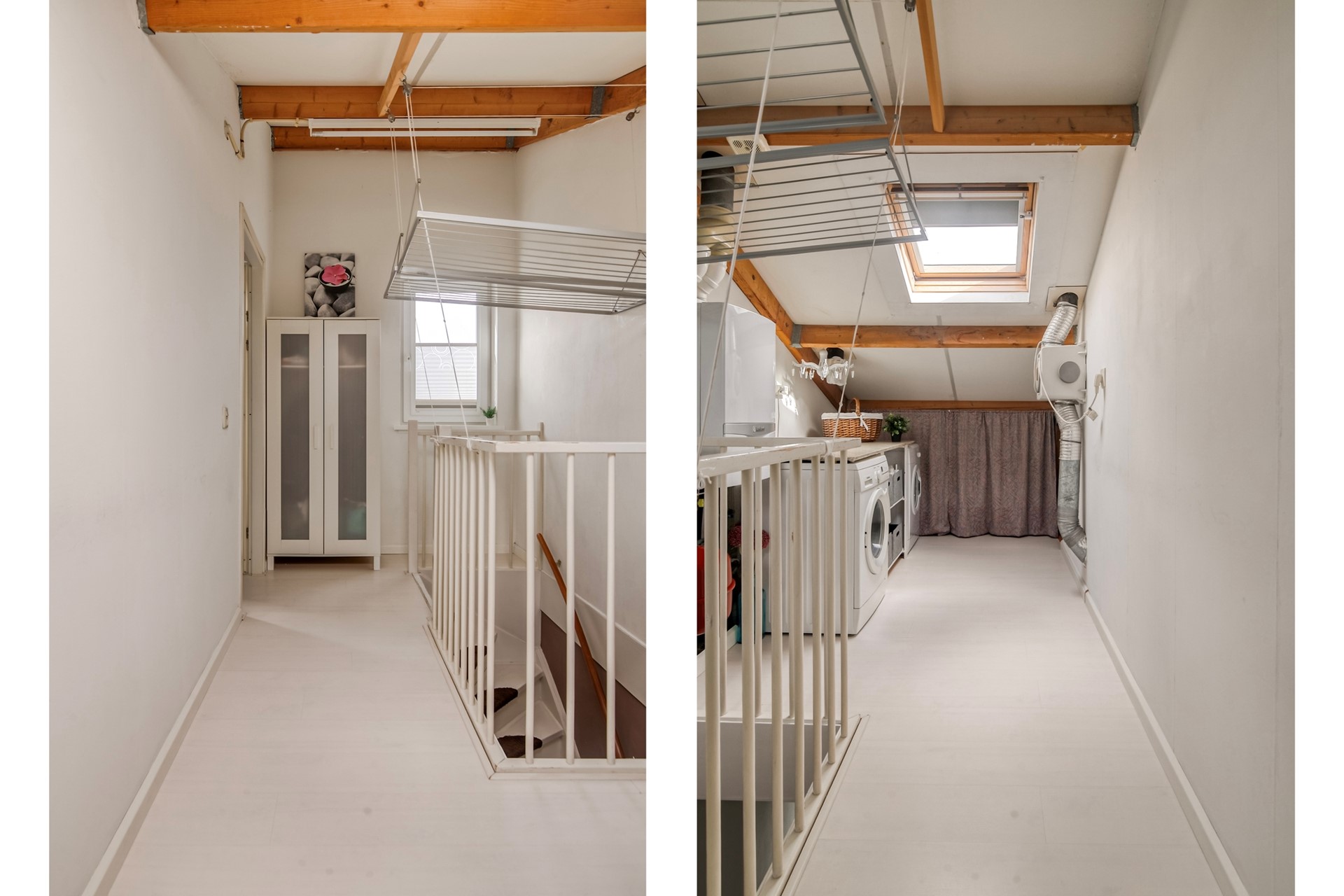 Ruime voorzolder welke is voorzien van een dakraam. De voorzolder doet dienst als praktische wasruimte. Opstelplaats voor de cv-ketel en mechanische ventilatie unit.
