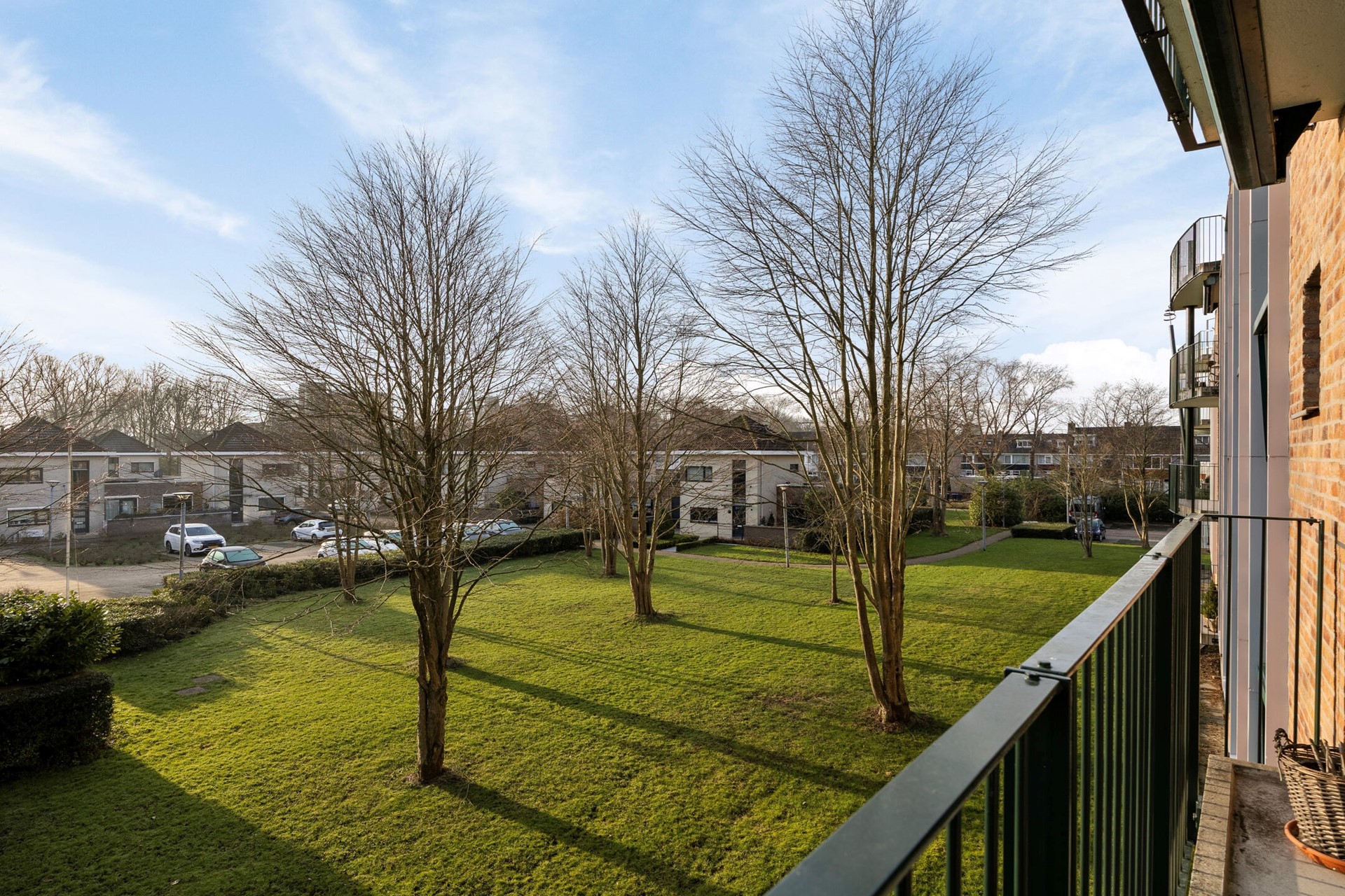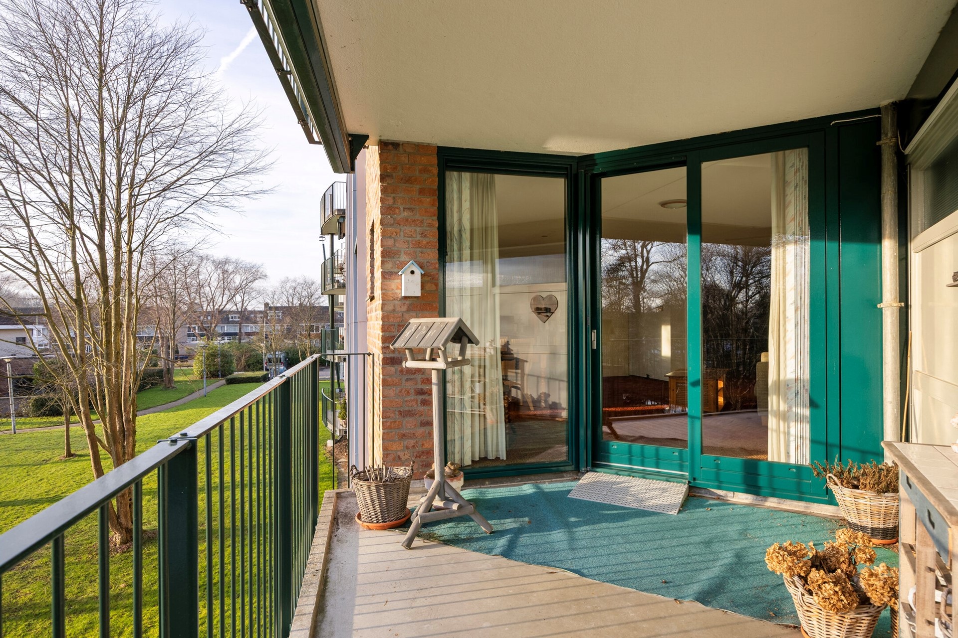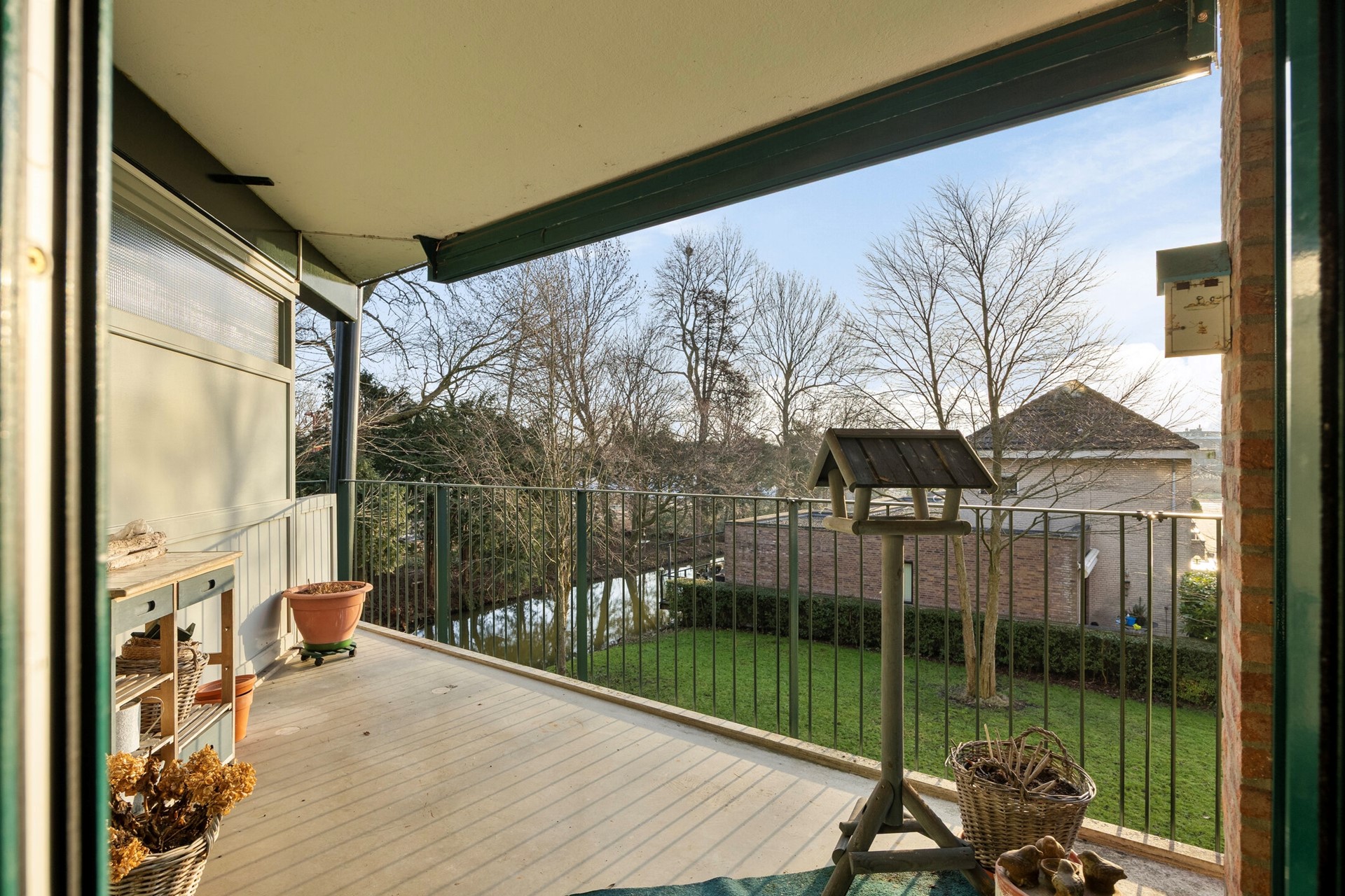 Het balkon op is meer dan groot genoeg voor een gezellige zithoek of een grote buitentafel. Het geboden uitzicht is groen met een grasveld en een hoge bomenrij. Hier kan optimaal genoten worden van gezellige zomeravonden met vrienden of familie!