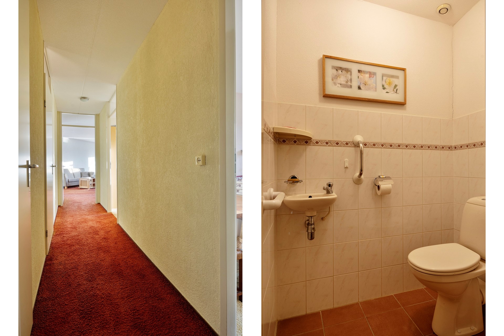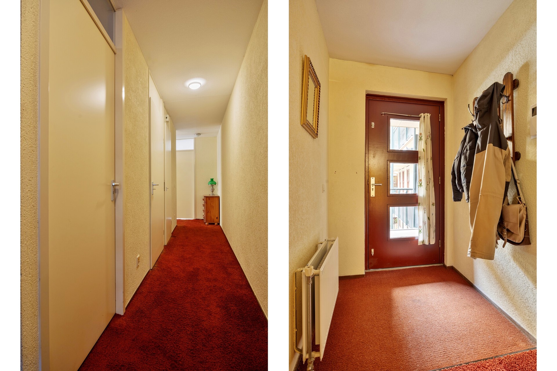 Binnenkomst in lange, L-vormige hal met toegang tot alle vertrekken.