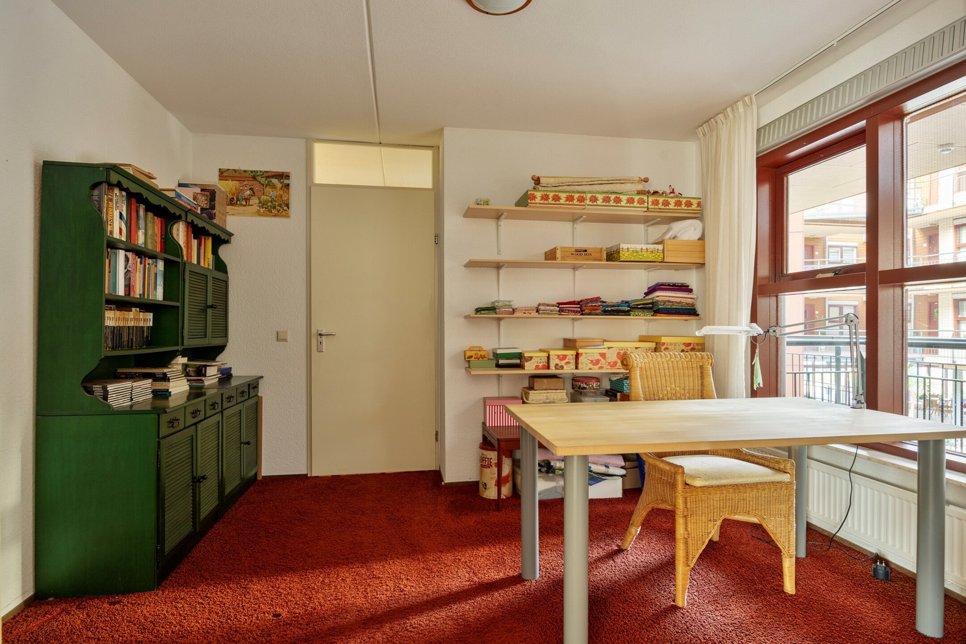 Deze slaapkamer kan worden bereikt via de keuken én de hal en is gelegen aan de binnentuinzijde van het appartement. Momenteel is deze ruimte in gebruik als hobbykamer, maar kan ook prima dienstdoen als slaapkamer of thuiskantoor.