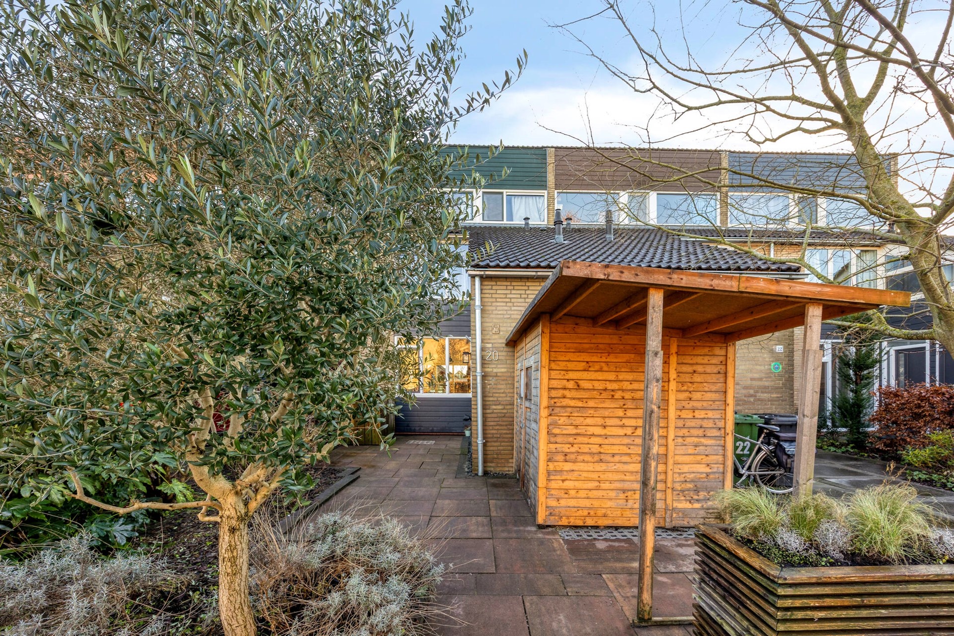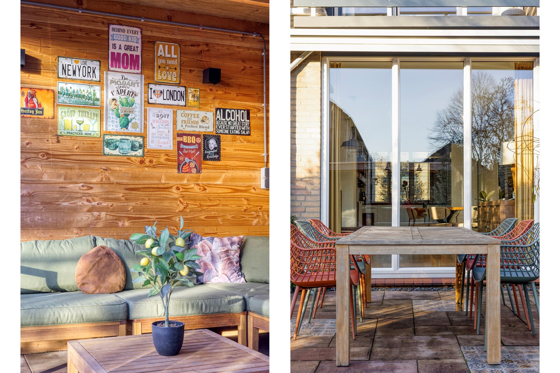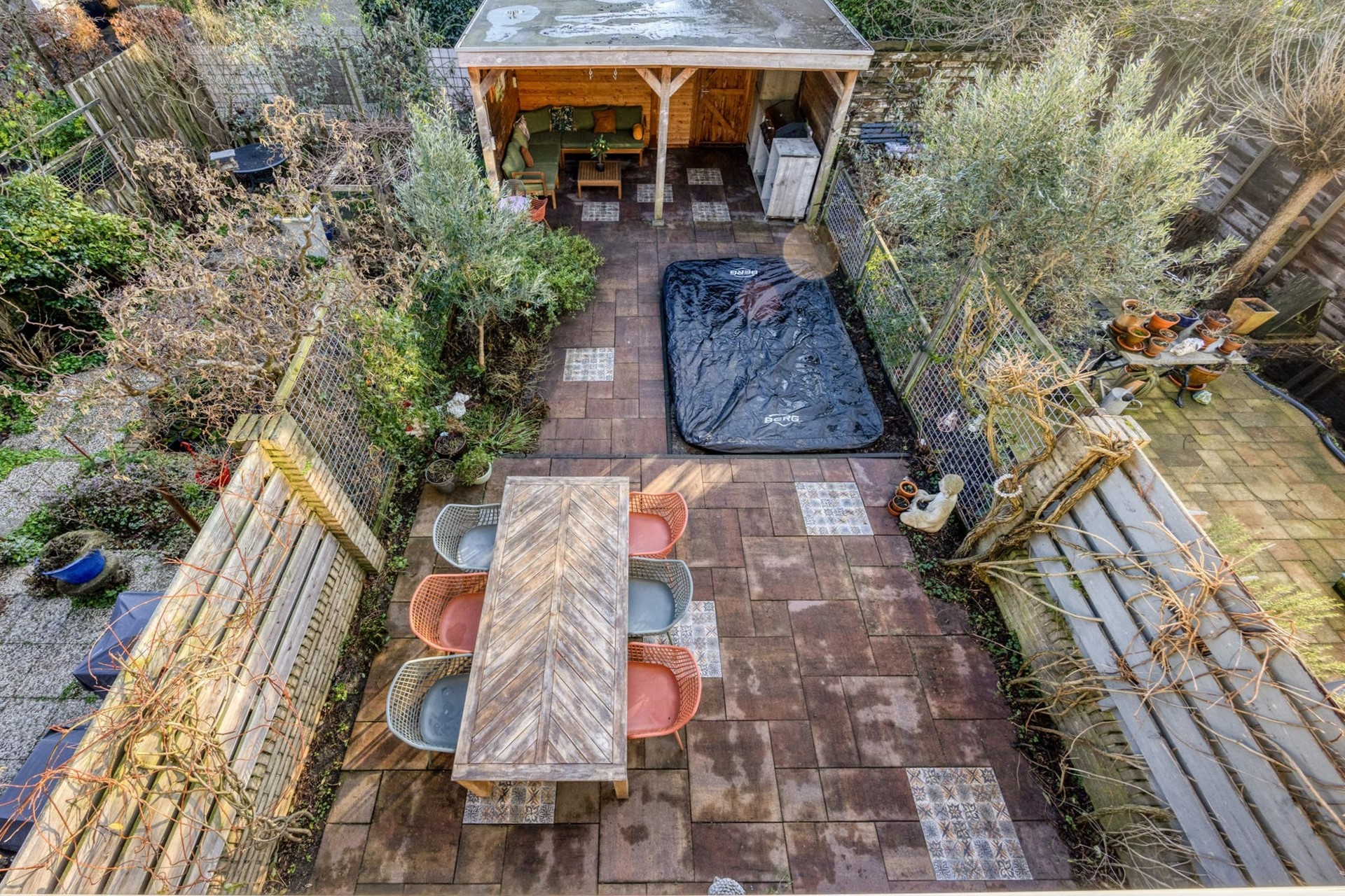 De fraai aangelegde achtertuin kent een ligging op het zuiden en is voorzien van een achterom en een moderne overkapping.