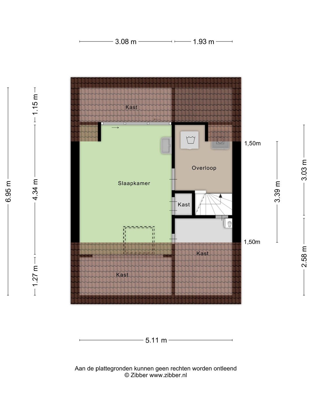 Afmetingen onder het schuine dakvlak zijn gemeten op 1.50 meter hoogte. De Meetinstructie is gebaseerd op de NEN2580. De Meetinstructie is bedoeld om een meer eenduidige manier van meten toe te passen voor het geven van een indicatie van de gebruiksoppervlakte. De Meetinstructie sluit verschillen in meetuitkomsten niet volledig uit, door bijvoorbeeld interpretatieverschillen, afrondingen of beperkingen bij het uitvoeren van de meting.