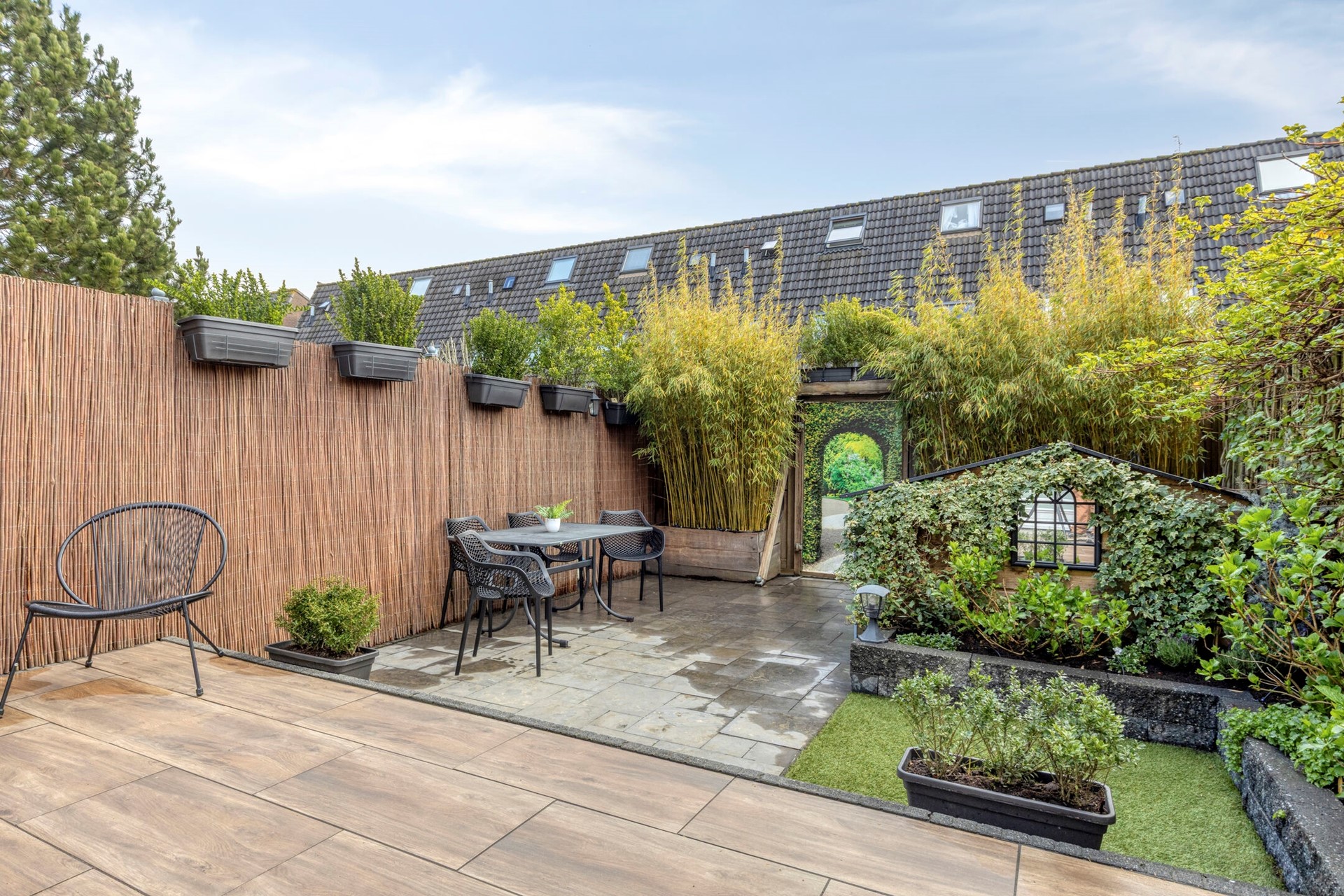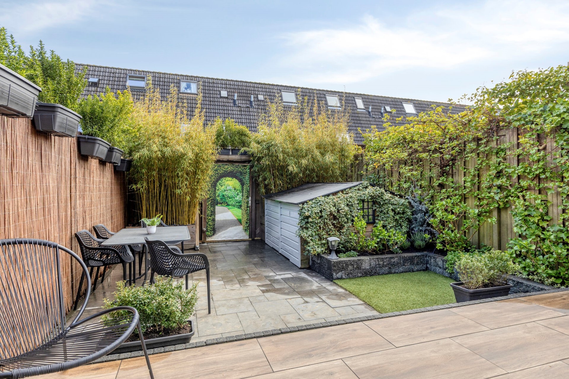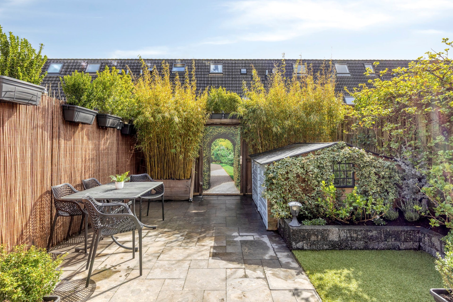 Fijne achtertuin op het zonnige zuidoosten met achterom en fietsenberging. De tuin vormt het hele jaar rond een fraai uitzicht vanuit de woonkamer en is de ideale plek om van buiten te genieten!