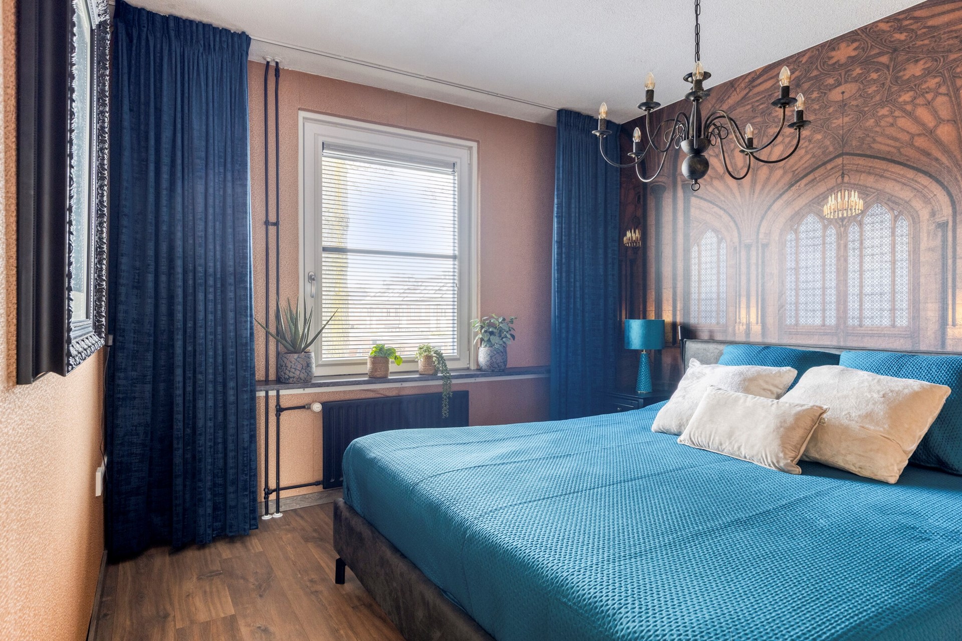 Sfeervol ingerichte ouderslaapkamer aan de voorzijde van de woning.